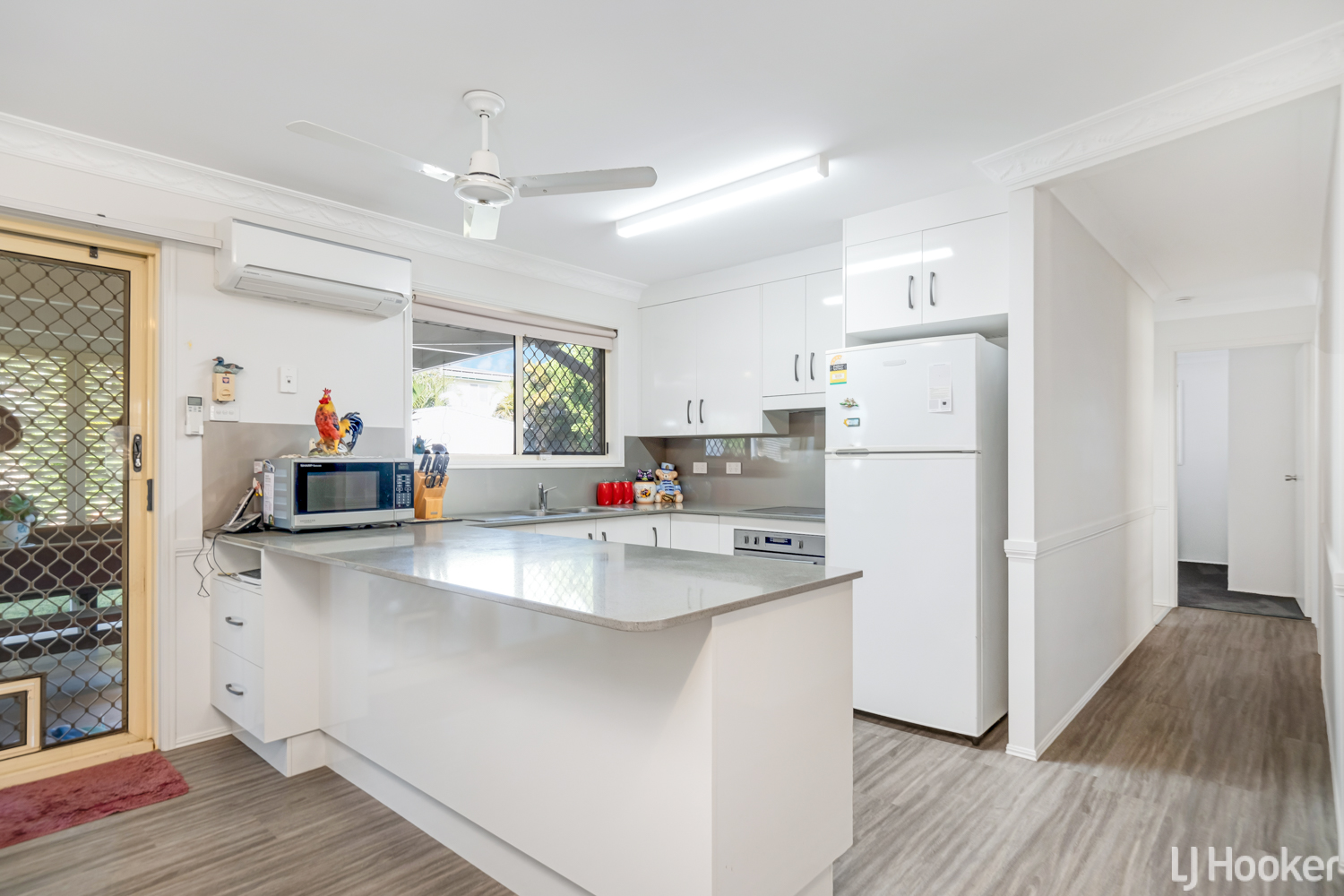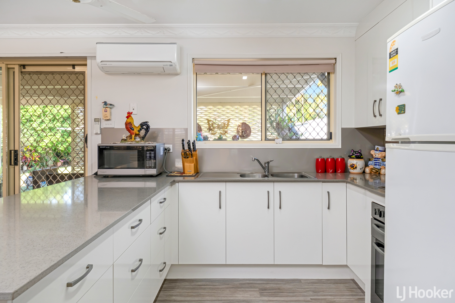 Spacious Living Area: Featuring a split system air conditioner to keep you cool, this area flows seamlessly into the kitchen and dining spaces.