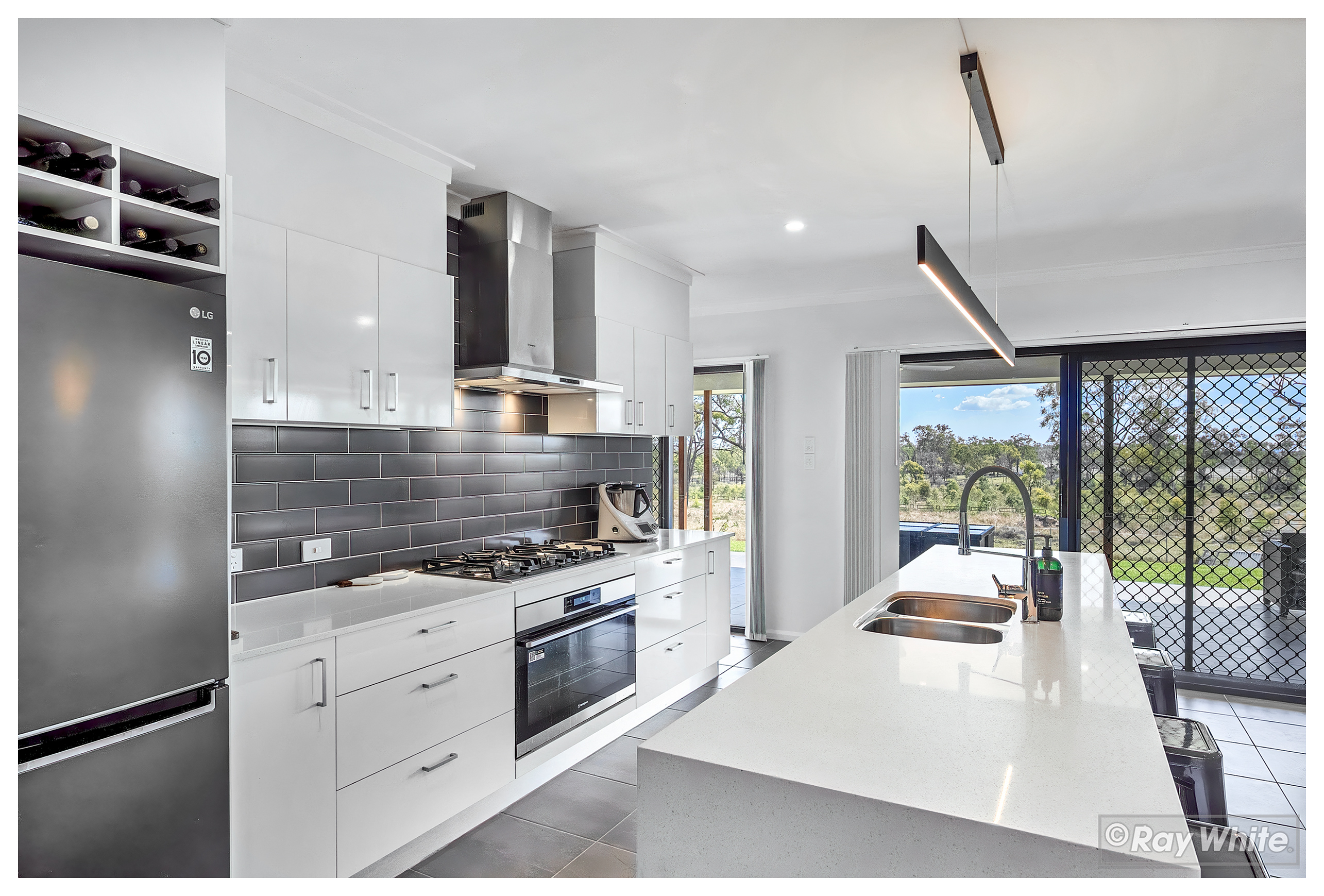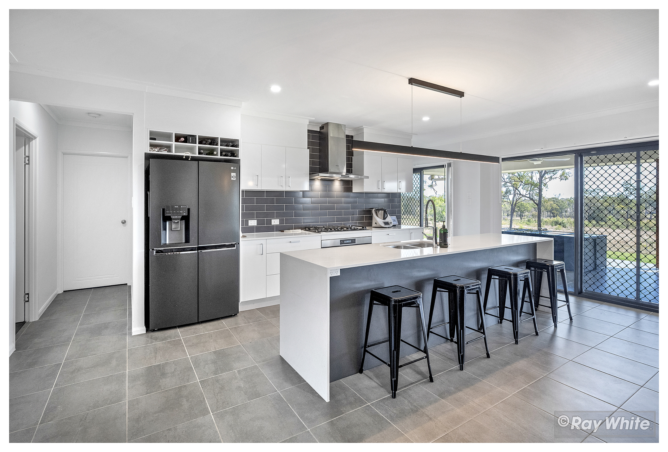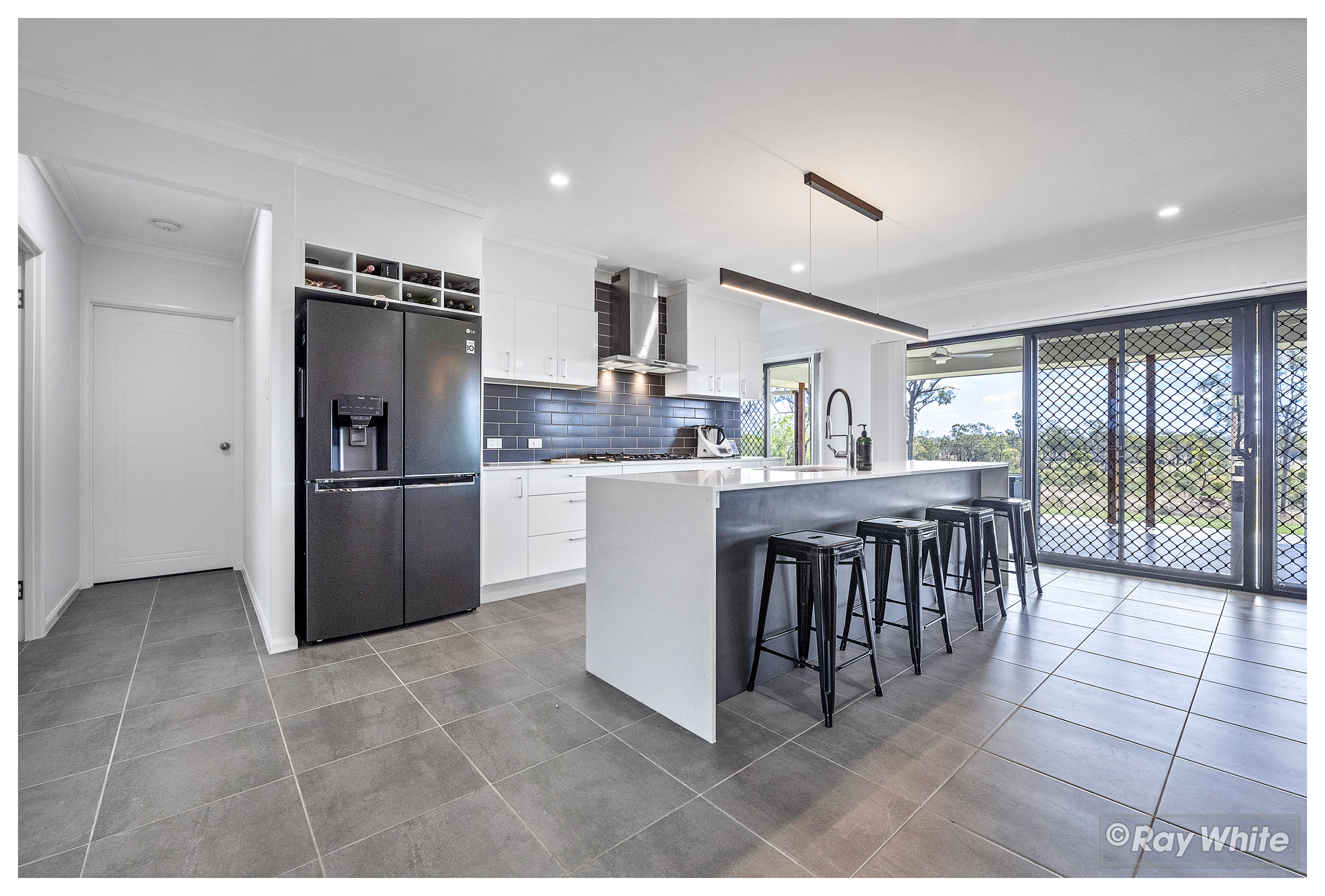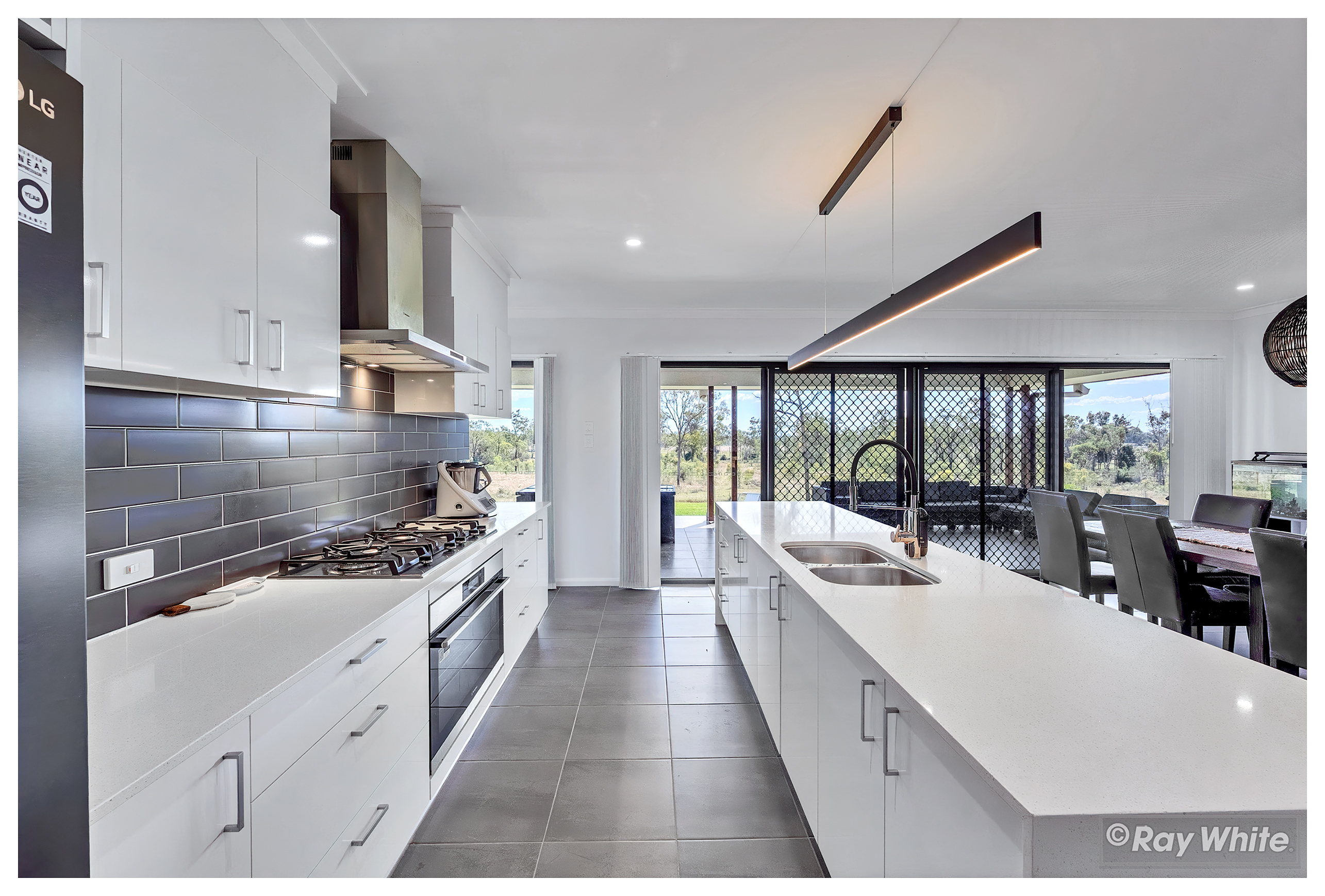 The stunning open-plan kitchen is a chef's dream, featuring a massive butler's pantry that provides ample storage and preparation space. Step outside to the impressive outdoor entertainment area, ideal for hosting friends and family while enjoying the vast and serene surroundings.